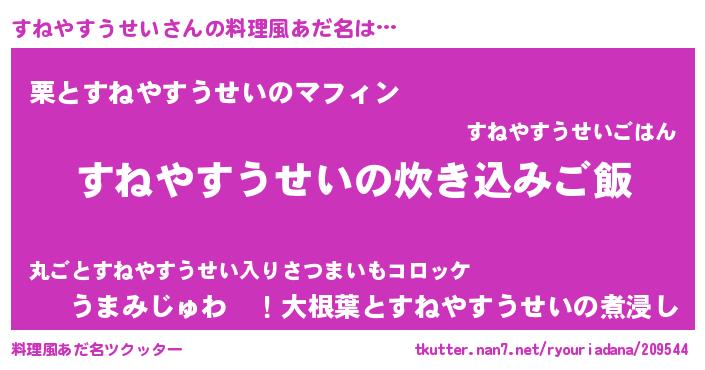 | ヘコむあだ名 | 『酢こんぶ』『すねやすうせい(遠い目)』 |