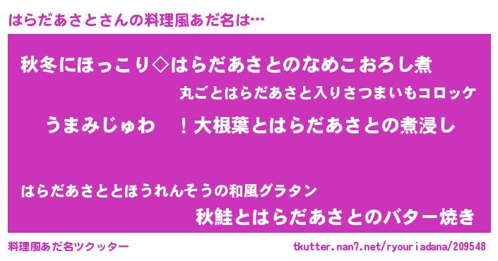 | ヘコむあだ名 | 『酢こんぶ』『はらだあさと(笑)』 |