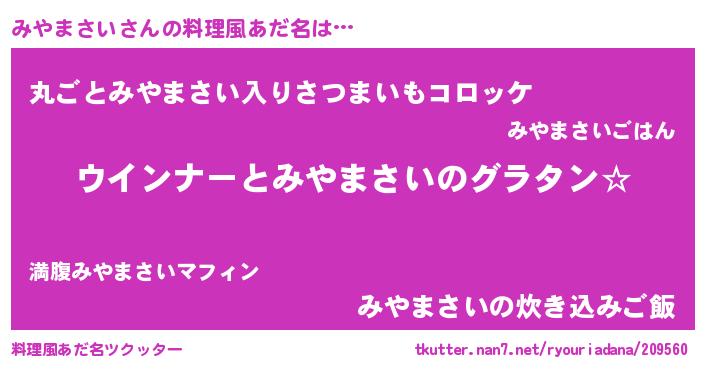 | ヘコむあだ名 | 『なまこ酢』『みやまさい(震え声)』 |