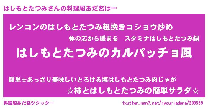 | 意味不明あだ名 | 『住所不定無職はしもとたつみ(14歳)』 |