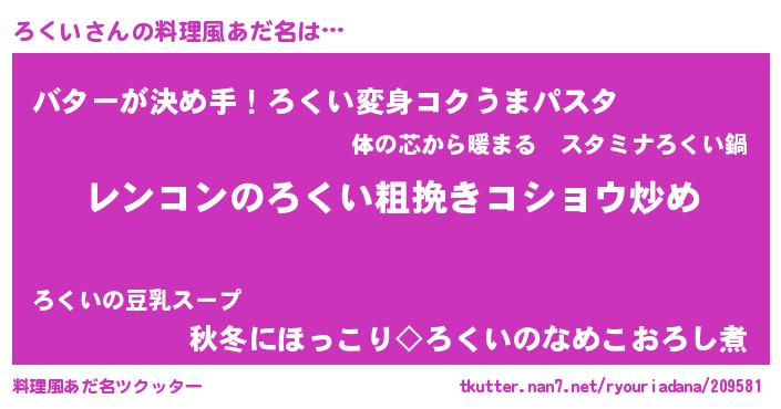 | ヒーロー風カッコイイあだ名 | 『超時空戦士ロクイ』『慈愛の使者ろくい』 |