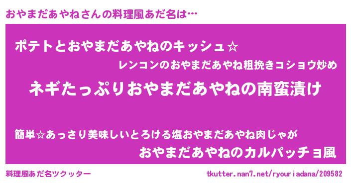 | ポケモン風あだ名 | 『オヤチュウ』『ヒオヤマダアヤネ』 |