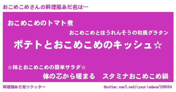 | 意味不明あだ名 | 『とにかく怪しいおこめこめ』 |
