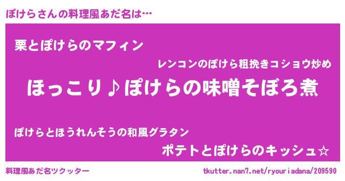 | 男性向けラノベタイトル風あだ名 | 『ぽけらの憂鬱』『はたらくぽけらさま!』 |