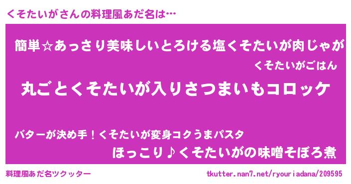 | ヘコむあだ名 | 『くそたいが(小並感)』『くそもー』 |