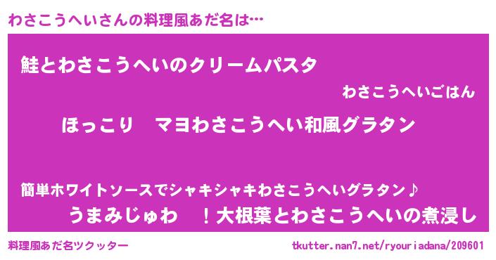 わさこうへいさんの料理風あだ名をツクッター!