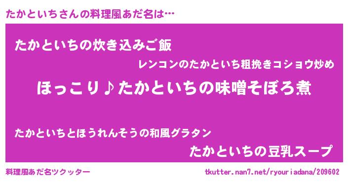 | 意味不明あだ名 | 『ペロリンたかといち』『自称たかといち』 |