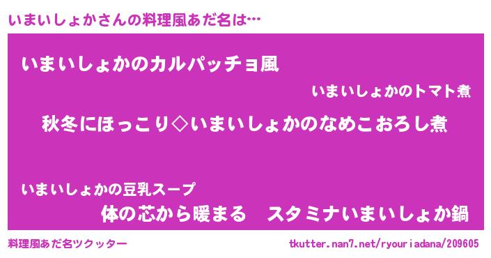 | 男性向けラノベタイトル風あだ名 | 『いまいしょかに滅ぼされるだけの簡単なお仕事です』 |