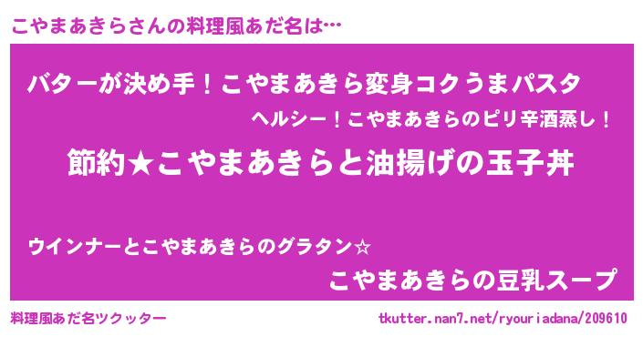 | 恥ずかしいあだ名 | 『プリティーこやまあきら』『こやっちょ』 |