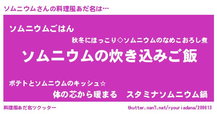 | ヘコむあだ名 | 『なまこ酢』『ソム太郎』『ソムもー』 |