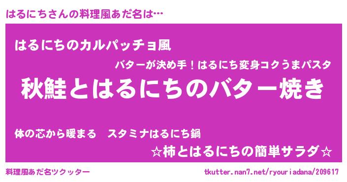 | 女子向けラノベタイトル風あだ名 | 『はるにちの契約王妃』『はるにち恋絵巻』 |
