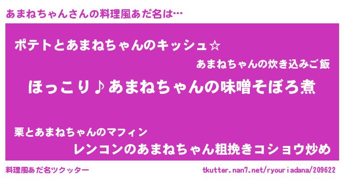 | ヒーロー風カッコイイあだ名 | 『スーパーアマネチャン』『銀牙騎士アマ』 |