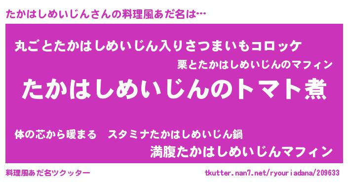 | ヘコむあだ名 | 『たかはしめいじん(笑)』『なまこ酢』 |