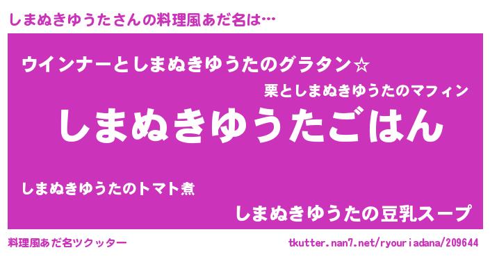 | 肩書あだ名 | 『しまぬきゆうた大将』 |