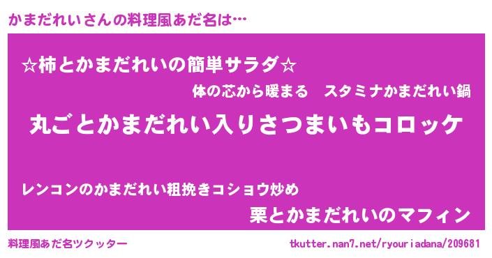| 意味不明あだ名 | 『住所不定無職かまだれい(62歳)』 |