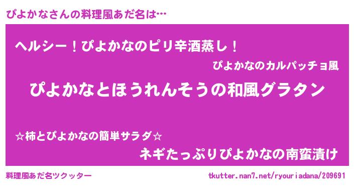 | 男性向けラノベタイトル風あだ名 | 『ぴよかな~年齢イコール彼女いない歴の魔法使い~』 |