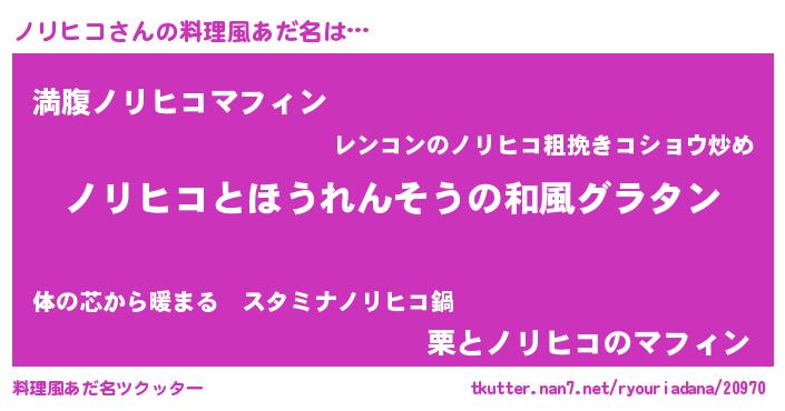 | 女子向けラノベタイトル風あだ名 | 『ノリヒコの玉の輿計画!』 |