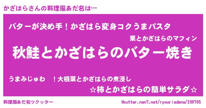 | 胡散臭い通販商品みたいなあだ名 | 『来世でも幸せになれる健康食品…その名も「かざはら」』 |