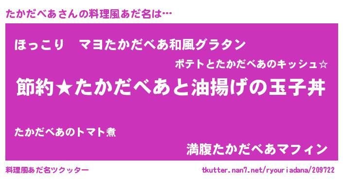 | 女子向けラノベタイトル風あだ名 | 『たかだべあ姫と円卓の騎士』 |
