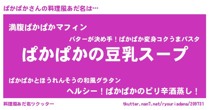 | 意味不明あだ名 | 『とにかく怪しいぱかぱか』 |