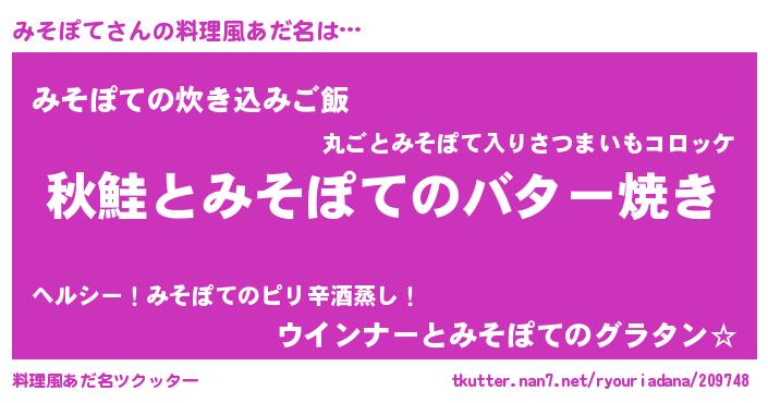 | 意味不明あだ名 | 『永久保存みそぽて』『自称みそぽて』 |