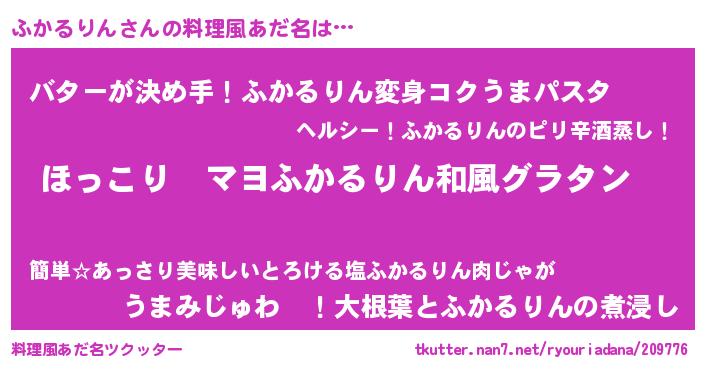 | 意味不明あだ名 | 『住所不定無職ふかるりん(14歳)』 |