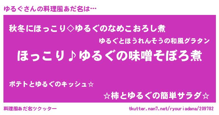 | ヘコむあだ名 | 『ゆるふぇ~』『ゆるぷりん』 |