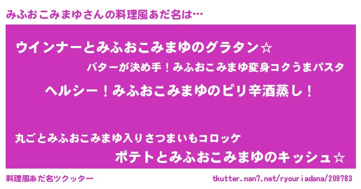 | 肩書あだ名 | 『みふおこみまゆ閣下』 |