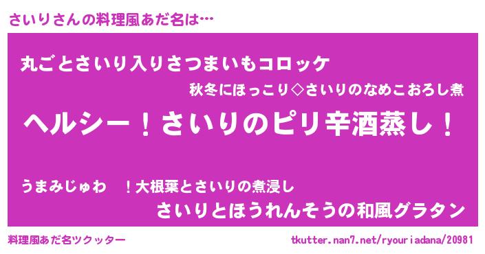 | 女子向けラノベタイトル風あだ名 | 『闇のさいり』『さいりの玉の輿計画!』 |