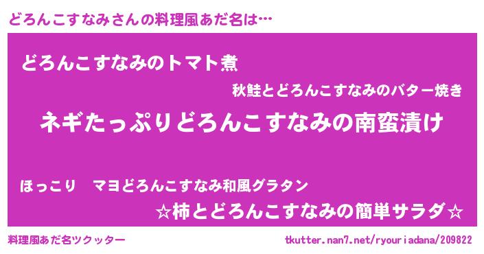 | 男性向けラノベタイトル風あだ名 | 『ドロンコスナミアートオンライン』 |