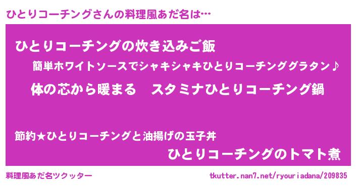 | 意味不明あだ名 | 『ひとりコーチングフォーエバー』 |