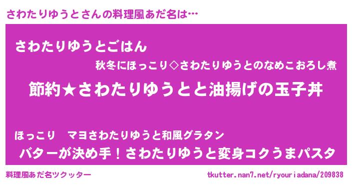 | ヘコむあだ名 | 『さわにゅー』『さわたりゆうと(笑)』 |