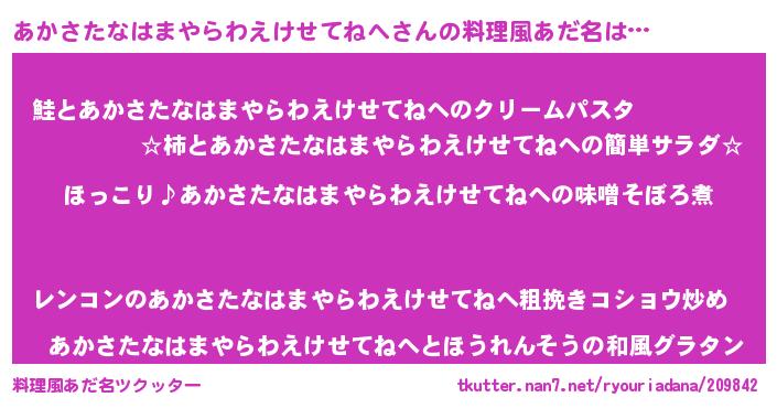 | 胡散臭い通販商品みたいなあだ名 | 『必ず成功する水晶球…その名も「あかさたなはまやらわえけせてねへ」』 |