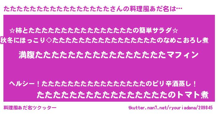 | 女子向けラノベタイトル風あだ名 | 『異世界で失敗しない100のたたたたたたたたたたたたたたたた』 |