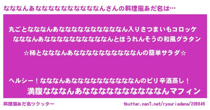 | 意味不明あだ名 | 『住所不定無職なななんあななななななななななん(1歳)』 |