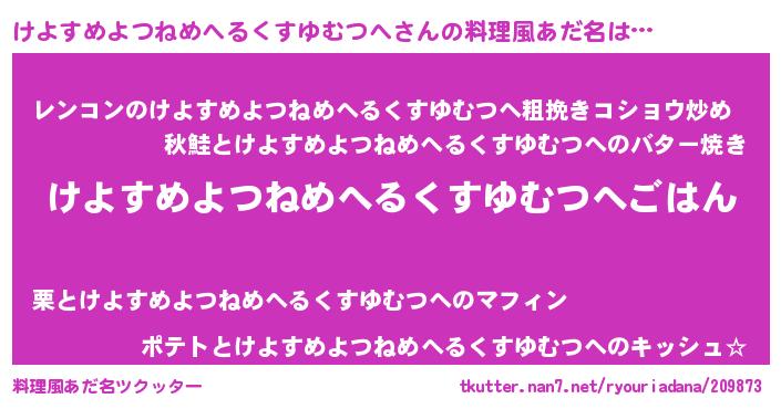 | 可愛いあだ名 | 『けよぷりん』『けようちぇる』 |