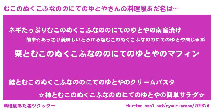 | 男性向けラノベタイトル風あだ名 | 『はたらくむこのぬくこふなののにてのゆとやさま!』 |