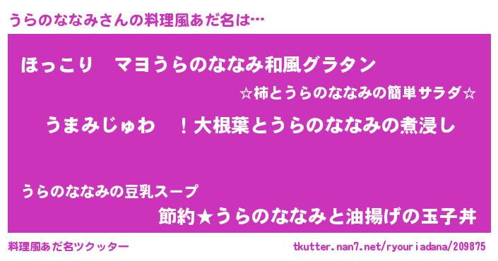 | 恥ずかしいあだ名 | 『うらっちょ』『プリティーうらのななみ』 |