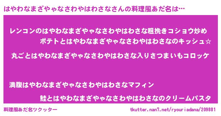 | 意味不明あだ名 | 『住所不定無職はやわなまざやゃなさわやはわさな(9歳)』 |