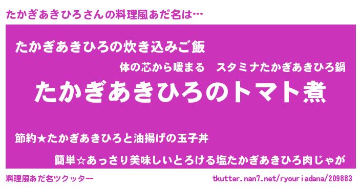 | ヘコむあだ名 | 『たかぎあきひろ(爆)』『レバニラ』 |