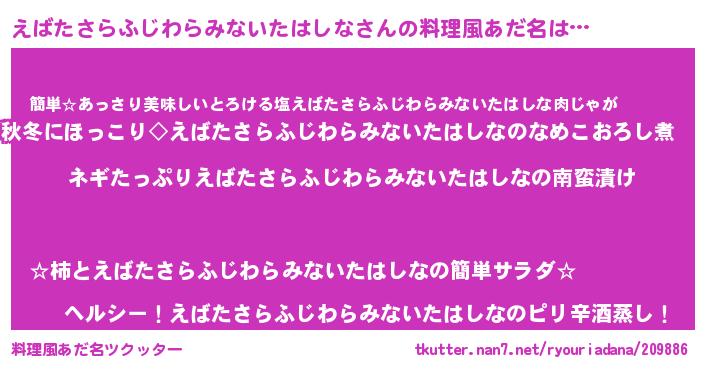 | ヒーロー風カッコイイあだ名 | 『スーパーエバタサラフジワラミナイタハシナ』 |