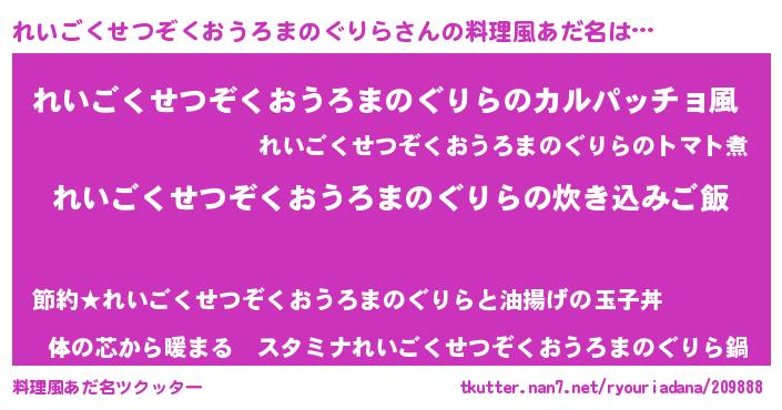 | ヘコむあだ名 | 『なまこ酢』『れいっふぃ~』 |