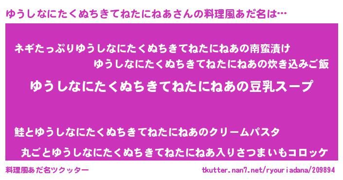 | ポケモン風あだ名 | 『ヒユウシナニタクヌチキテネタニネア』 |