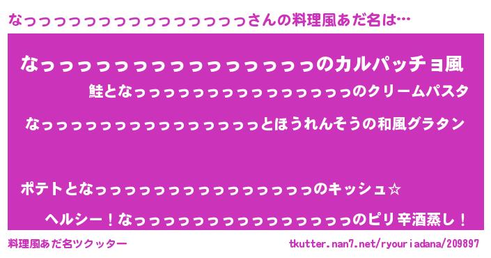 | 胡散臭い通販商品みたいなあだ名 | 『あなたにだけ特別に提供する100年もののヴィンテージワイン…その名も「なっっっっっっっっっっっっっっっ」』 |