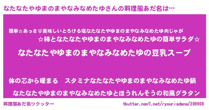 | ポケモン風あだ名 | 『ヒナタナタヤユマノマヤナミナメタユ』 |