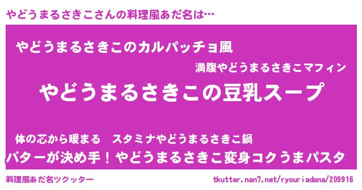 | 意味不明あだ名 | 『とにかく怪しいやどうまるさきこ』 |