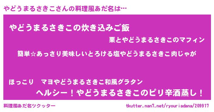 | 欧米人風あだ名 | 『ダルビッシュやどうまるさきこ』 |