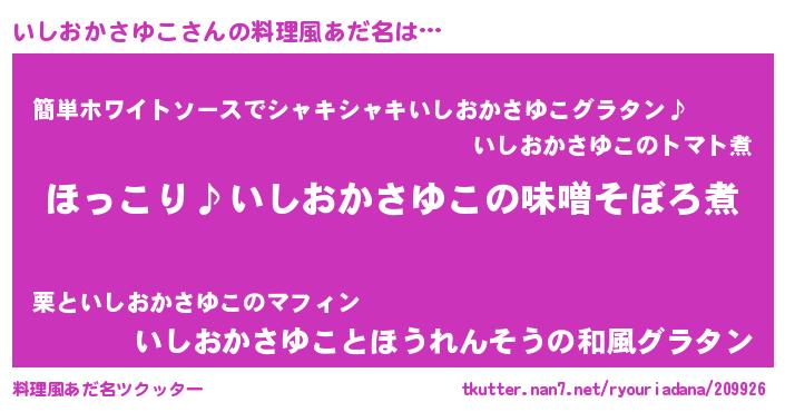 | ポケモン風あだ名 | 『イシチュウ』『ヒイシオカサユコ』 |