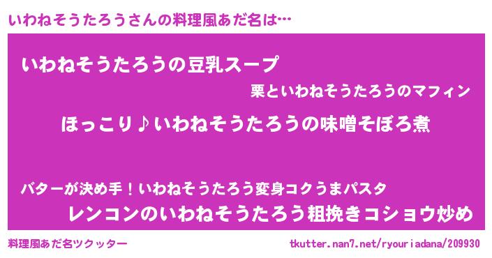 | ヒーロー風カッコイイあだ名 | 『スーパーイワネソウタロウ』 |