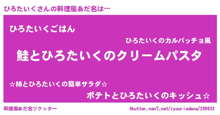 | 女子向けラノベタイトル風あだ名 | 『死神ひろたいくの再婚』 |